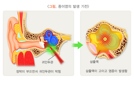 - 귀 통증(급성 중이염)