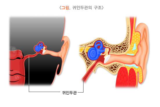 이관은 코와 귀를 연결하는 통로로, 고막 뒤 공간인 중이와 외부의 압력을 조절하는 역할을 합니다. 이관이 제대로 열리고 닫히지 않으면 귀 내부 압력이 불균형해져 귀가 막힌 듯한 느낌과 함께 이명 등의 증상이 나타날 수 있습니다.