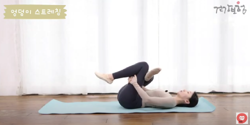 - 엉덩이가 바닥에서 떨어지지 않도록 유지하며 엉덩이 근육을 늘립니다.