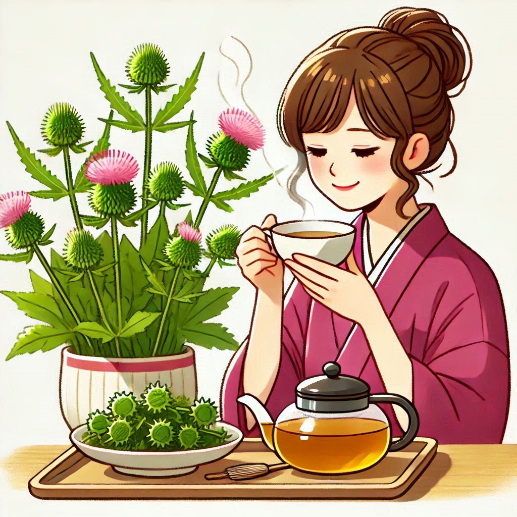 우엉을 얇게 썰어 말린 뒤 볶아 우엉으로 차를 만들어 마시면 영양소가 더욱 응축되어 우엉의 영양 성분을 더욱 효과적으로 섭취할 수 있습니다. 특히 변비 개선에 도움이 되며, 우엉의 성분들이 잘 우러나오게 됩니다.