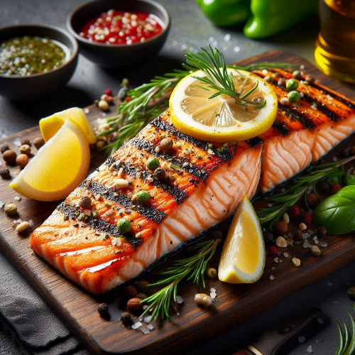 연어와 고등어 같은 등 푸른 생선은 오메가-3 지방산이 풍부해서 콜레스테롤 낮추는 음식으로 유명하죠. 오메가-3는 염증을 줄이고 중성지방 수치를 낮추어 혈액순환을 개선합니다. 주 2회 이상 구운 생선 요리를 즐기는 것이 좋으며 구울 때는 레몬즙을 뿌려주면 비타민 C가 지방산의 산화를 막아주고, 오메가-3의 흡수율도 높여준답니다. - 아마씨와 치아씨